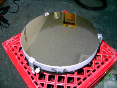 Unfortunately, at the time I received my optics, I did not have a place to build the beast. A wooden Fork Mount was going to be the way to go. I was living in a modest apartment and had limited tools to work with. So, the mirror set was stored away for 15 years. Then in 2001 I rekindled my aspirations in building this Fork Mounted telescope. Finding the precious time, planning, designing, and getting the funds took another 3 years. Never testing the optics over all those years really made me apprehensive about how they were going to perform. Nonetheless, I was steadfast in constructing the telescope and now I had a garage to work on the project. It was definitely a long term project taking over 2 years to complete once construction started in May, 2004 - utilizing what little free time and trickling funds I had. All the while I worried whether the optics were any good. I had put so much time and effort into the construction of the supporting components not knowing fully well if the optics would work as specified. Well the time had finally come on May 1, 2005 when I installed the optics in the tube for the first time. On this day, my son Trevor took the privilege of performing First Light. Taking aim at the last quarter moon during daylight hours, I asked my son to take a look through the scope using an inexpensive 25mm Series 500 Plossl while holding the incomplete scope atop a Workmate type bench. He reported that the image looked fantastic despite looking at it in broad daylight! Then I placed my eye to the eyepiece and was graced with a sharp image easily discerning the craters in sharp detail. I could not wait to see how it would perform at night. But, it would be another eight months before I had done so, as I proceeded with completing the construction and finishing of the fork mount. Well, the end results proved very successful and I am eternally grateful.