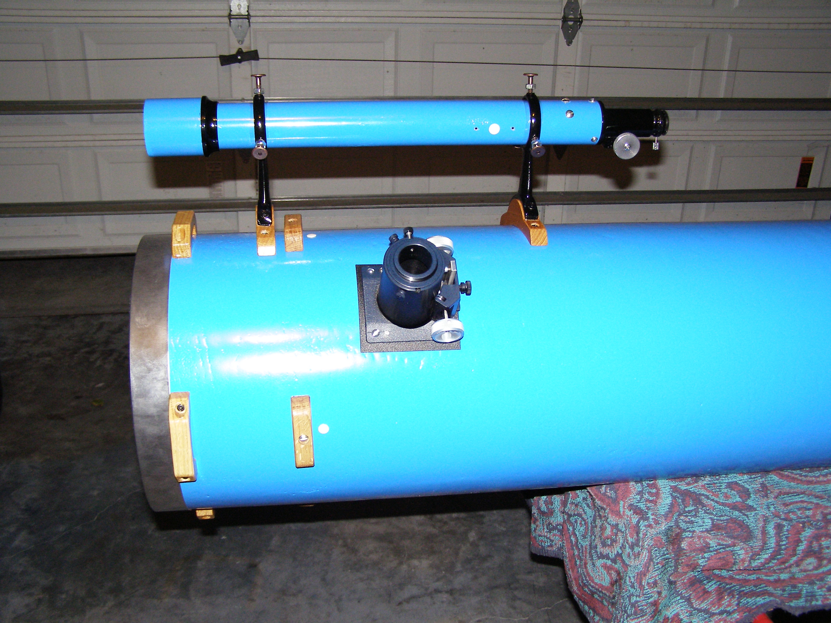 The SAO 10" Newtonian OTA is now complete! This front end photo shows a close-up of the main external components installed. Now, lets move on to take a look at the whole OTA.