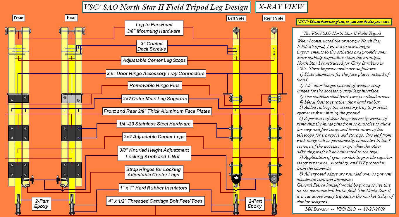 North Star II Field Tripod as constructed by Mel Dawson. Please click on any specific design diagram of interest