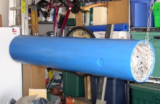 Unfortunately, at the time I received my optics, I did not have a place to build the beast. A wooden Fork Mount was going to be the way to go. I was living in a modest apartment and had limited tools to work with. So, the mirror set was stored away for 15 years. Then in 2001 I rekindled my aspirations in building this Fork Mounted telescope. Finding the precious time, planning, designing, and getting the funds took another 3 years. Never testing the optics over all those years really made me apprehensive about how they were going to perform. Nonetheless, I was steadfast in constructing the telescope and now I had a garage to work on the project. It was definitely a long term project taking over 2 years to complete once construction started in May, 2004 - utilizing what little free time and trickling funds I had. All the while I worried whether the optics were any good. I had put so much time and effort into the construction of the supporting components not knowing fully well if the optics would work as specified. Well the time had finally come on May 1, 2005 when I installed the optics in the tube for the first time. On this day, my son Trevor took the privilege of performing First Light. Taking aim at the last quarter moon during daylight hours, I asked my son to take a look through the scope using an inexpensive 25mm Series 500 Plossl while holding the incomplete scope atop a Workmate type bench. He reported that the image looked fantastic despite looking at it in broad daylight! Then I placed my eye to the eyepiece and was graced with a sharp image easily discerning the craters in sharp detail. I could not wait to see how it would perform at night. But, it would be another eight months before I had done so, as I proceeded with completing the construction and finishing of the fork mount. Well, the end results proved very successful and I am eternally grateful.
