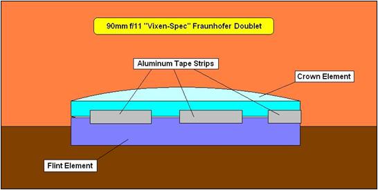 Diagram of my 90mm f/11 with Element centering Aluminum Tape Strips