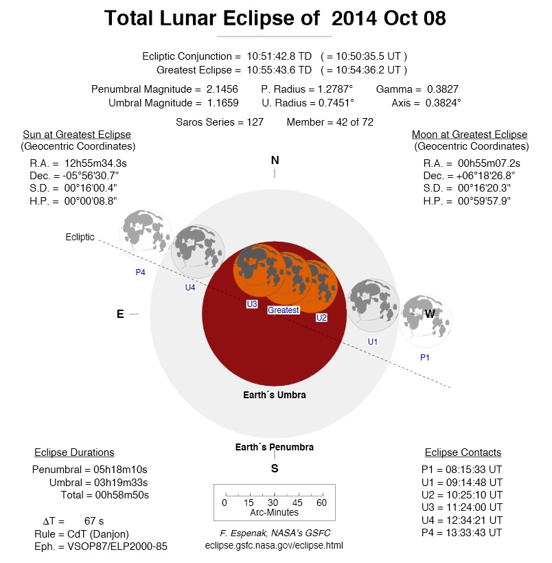 collection of images of the October 08, 2014 Total Lunar Eclipse were