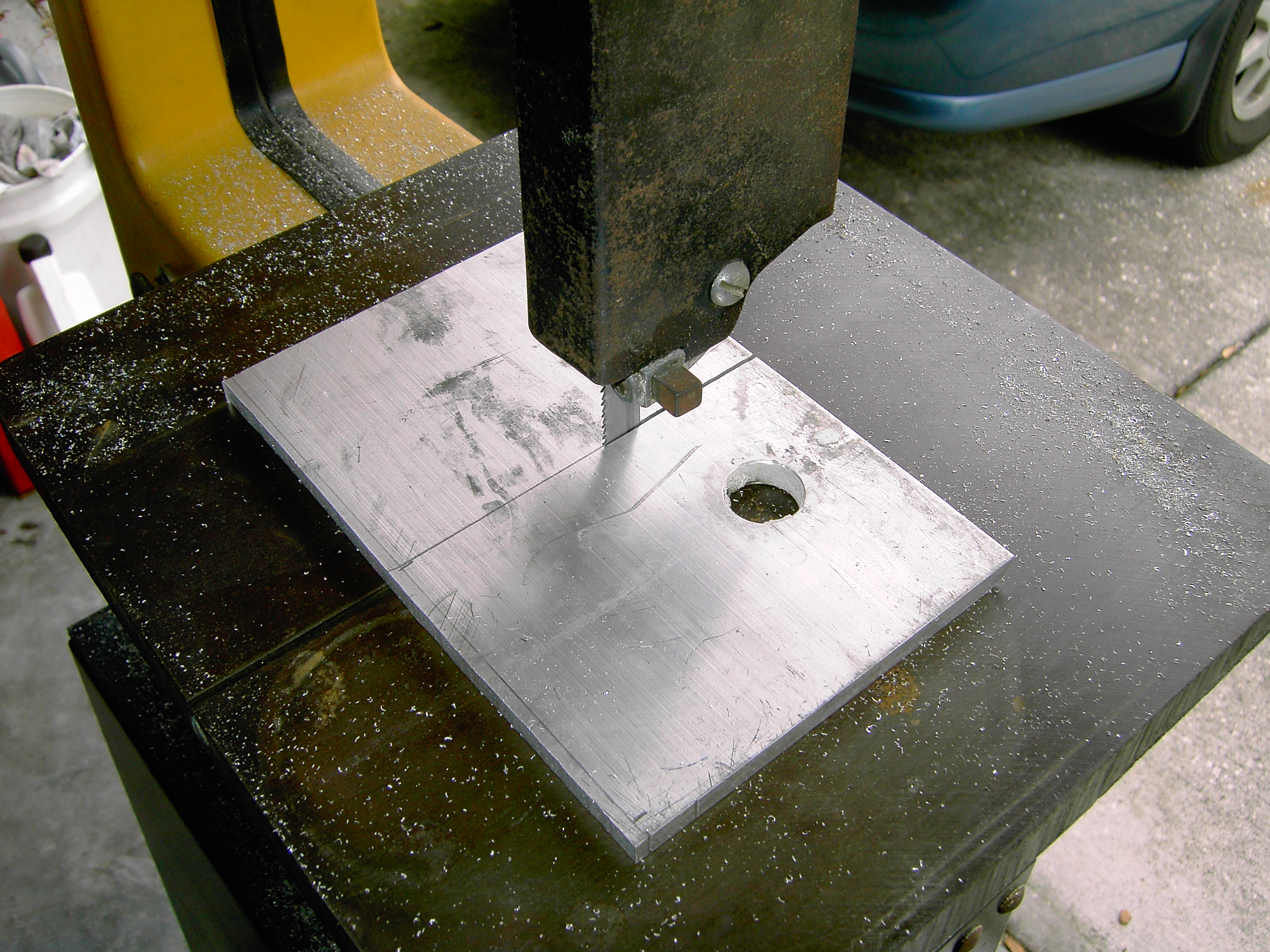 of T-6061 3/8" aluminum plate being cut to form the first of fifteen