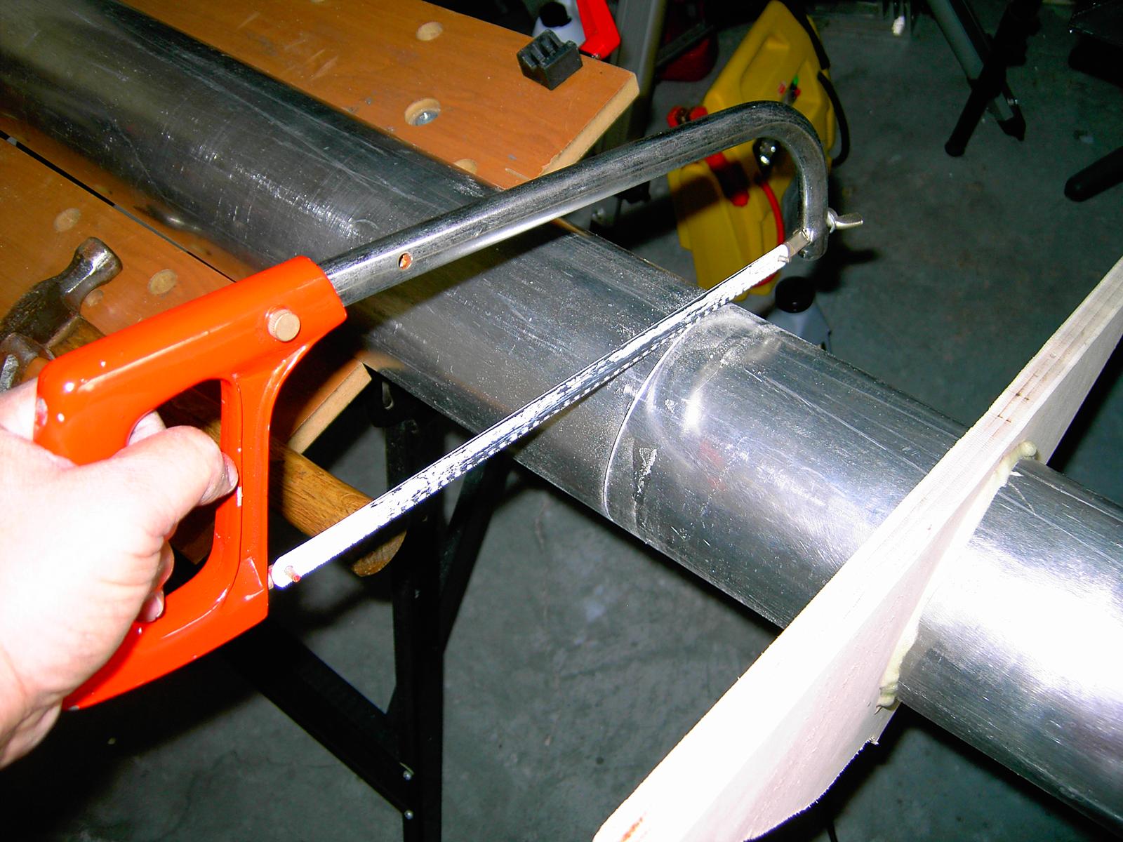 hacksaw blade was reinstalled into its handle, and the plywood board