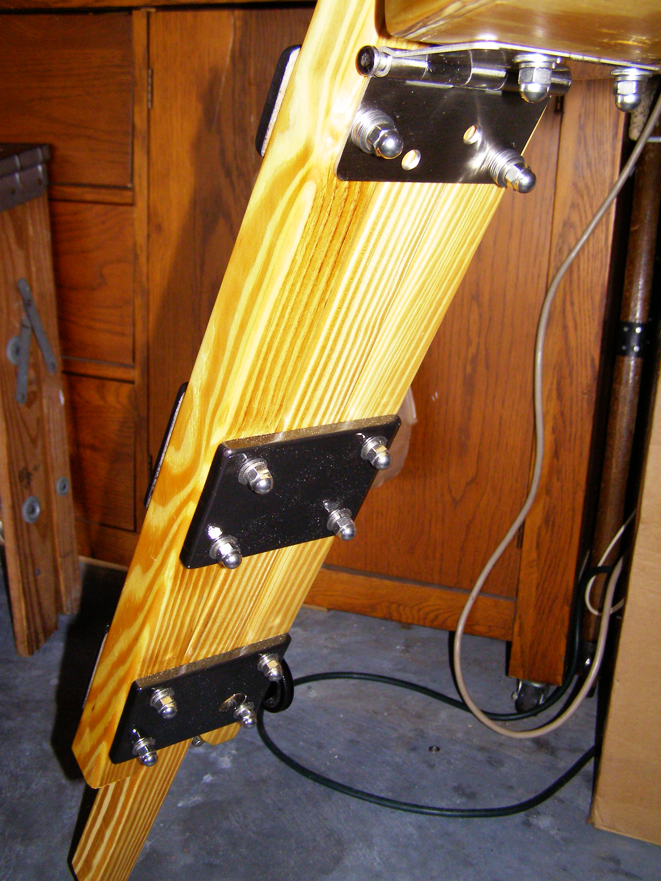 Here is an inside view of one of the three legs showing the mounted faceplates and accessory tray connection.