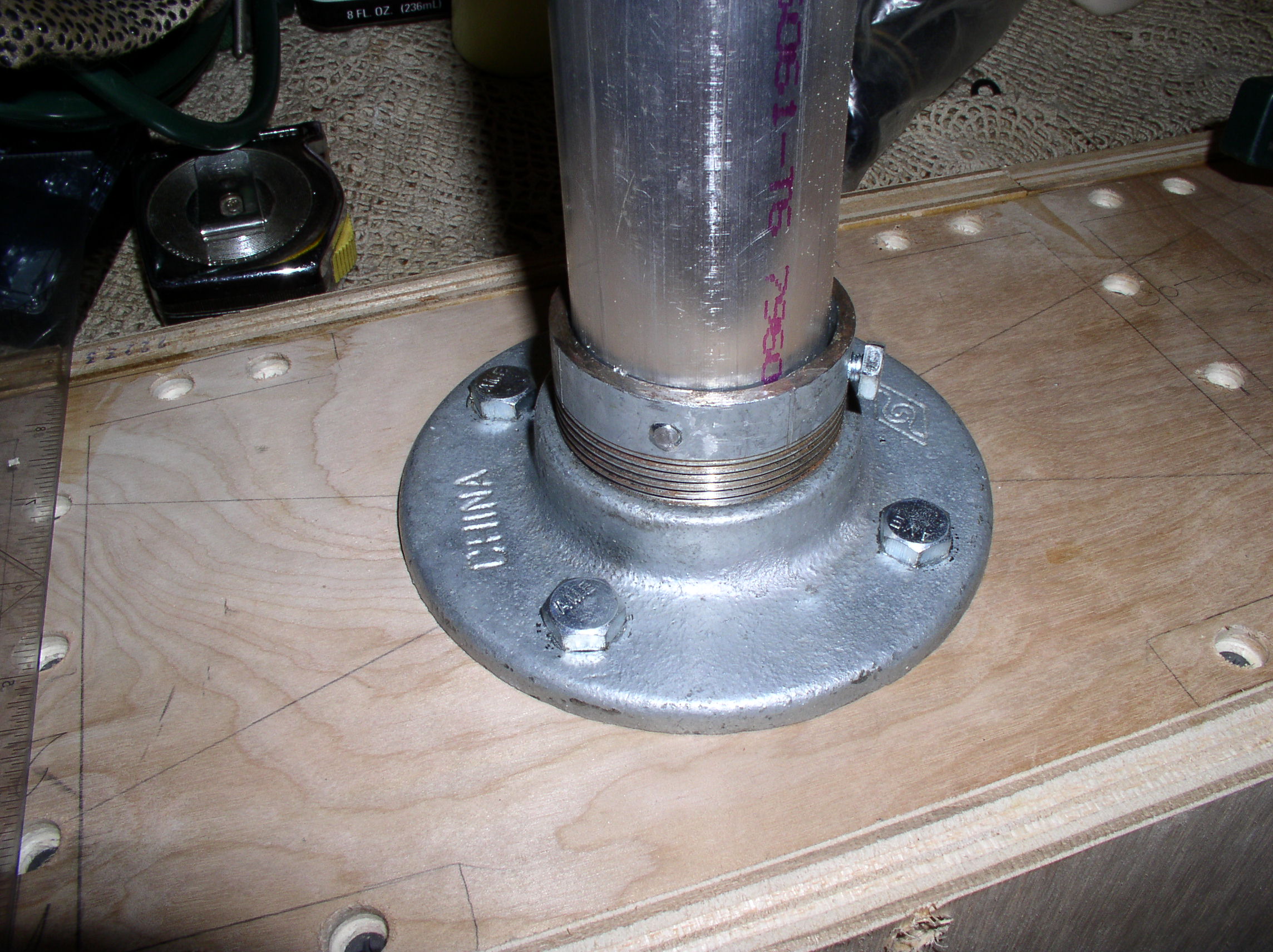 through the side of the flange and tapped to allow a 1/4x20 thread hex