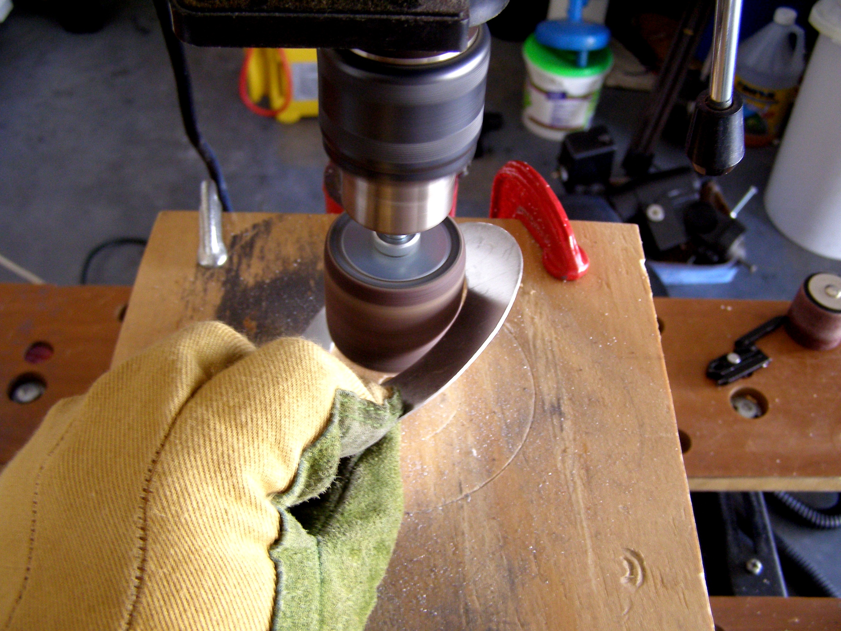 and sharpening the edges of the openings on an angle using a sanding drum attached
