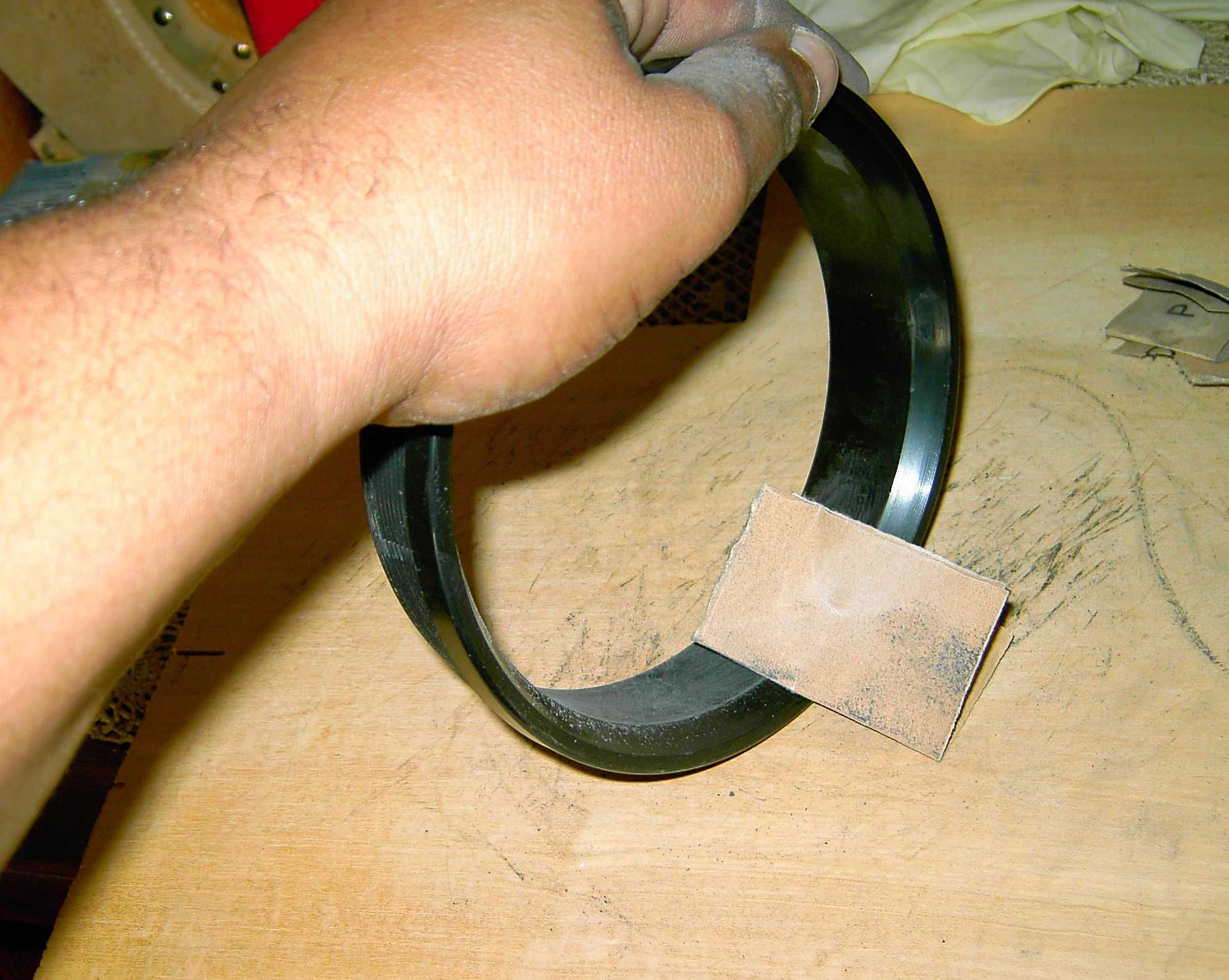 the lens retaining ring was also done to rough up the surface in
