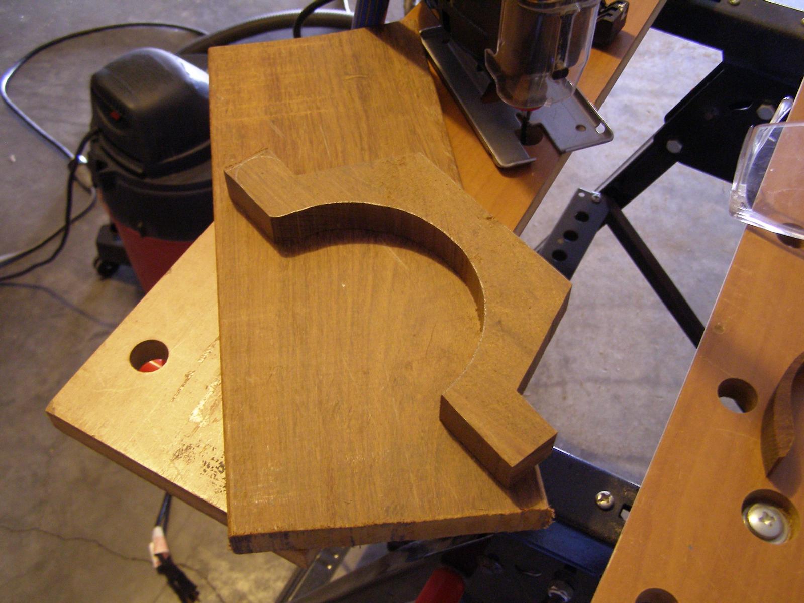 on the teakwood flooring board, I used my band saw to rough cut out