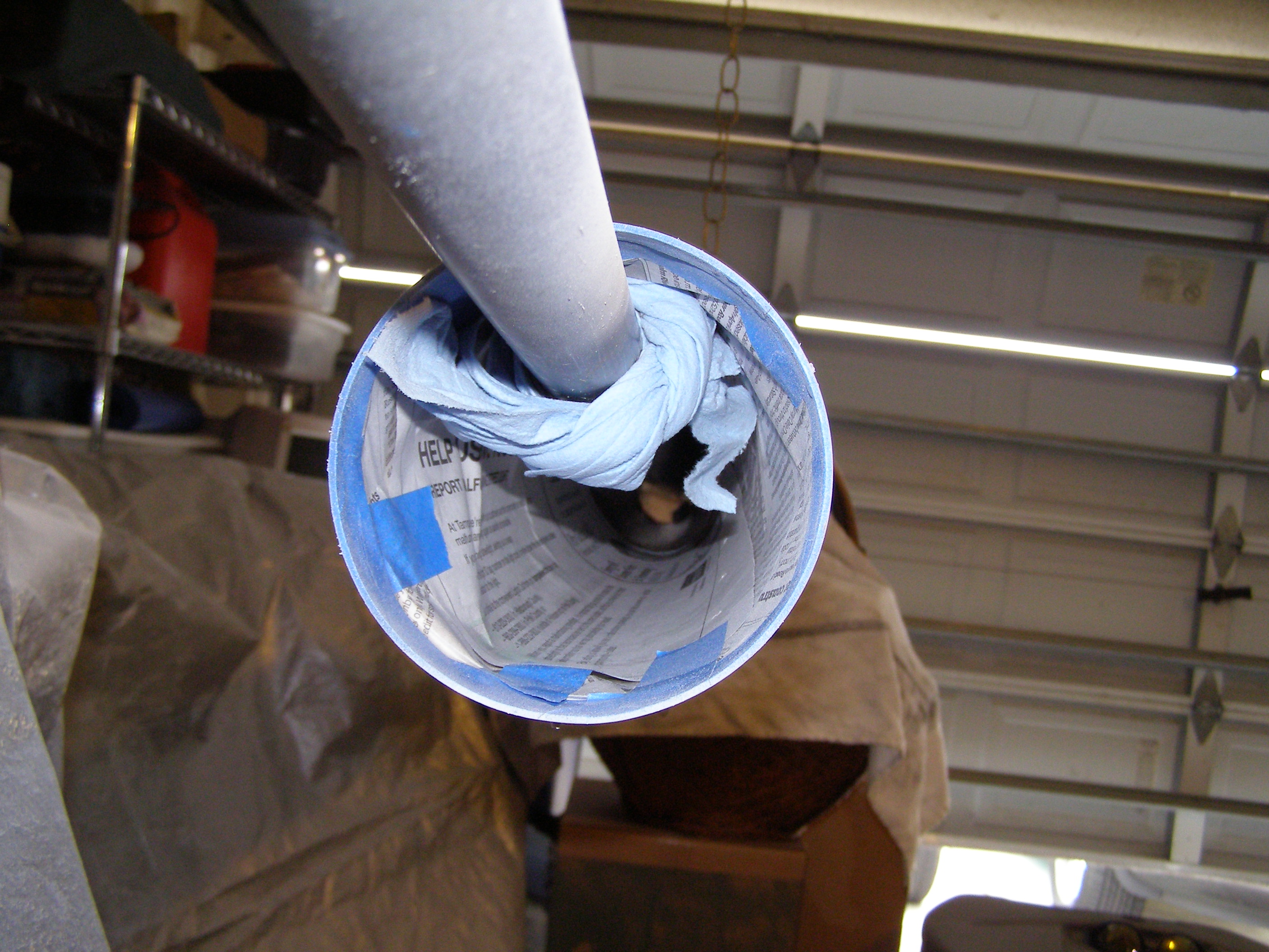 newspaper, held in place with painters tape. Then, the PVC pipe was