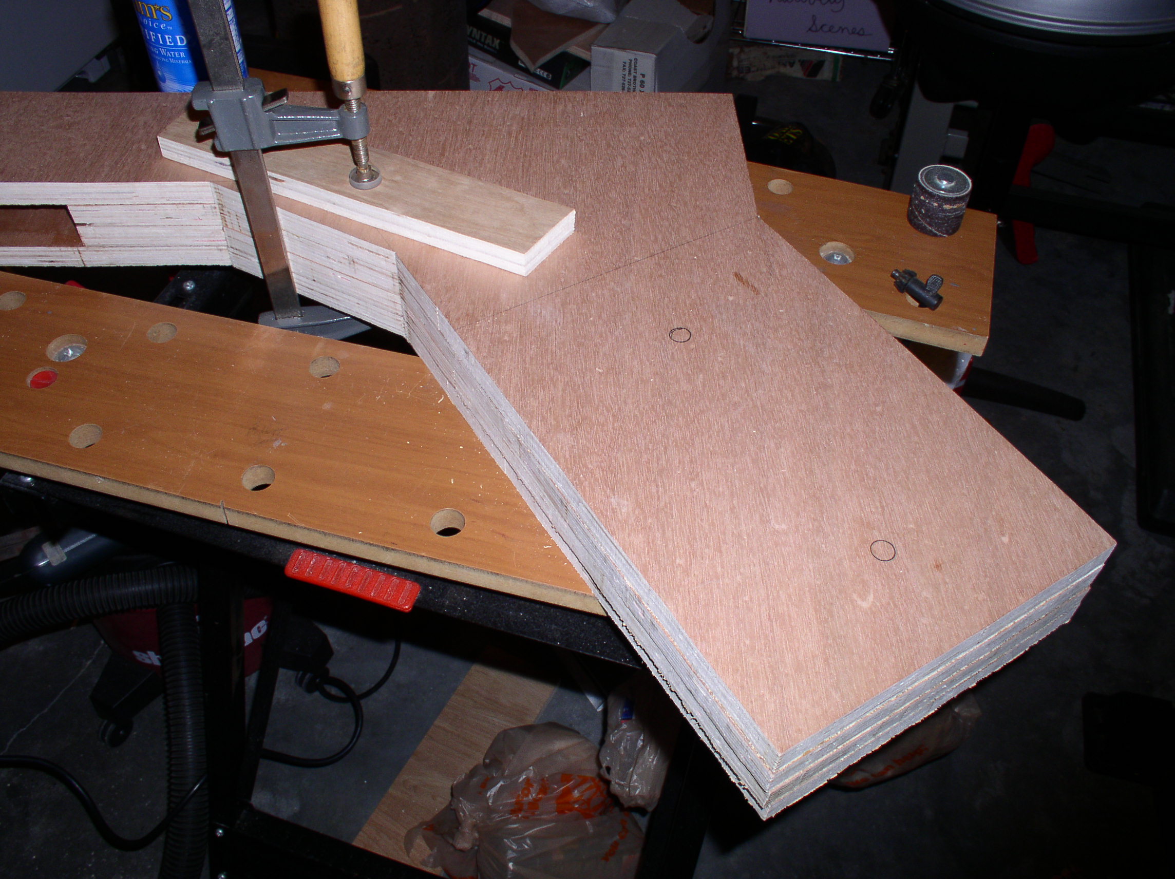 Truss Arms stacked together and held precisely in place to be drilled to receive the RA Axis Support